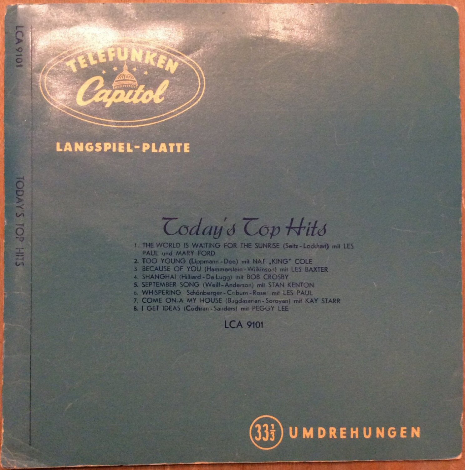 Tatsache ist aber das die Deutschen Telefunken Capitol 78T Platten glaub alle in der Capitol C - Serie erschienen sind, und dazu auch noch anders ausgesehen haben.