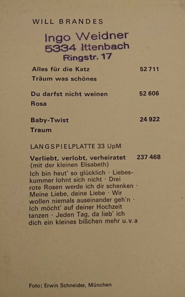 ?? 66....52 711 A....WILL BRANDES..Alles für die Katz/ B….Träum was Schönes