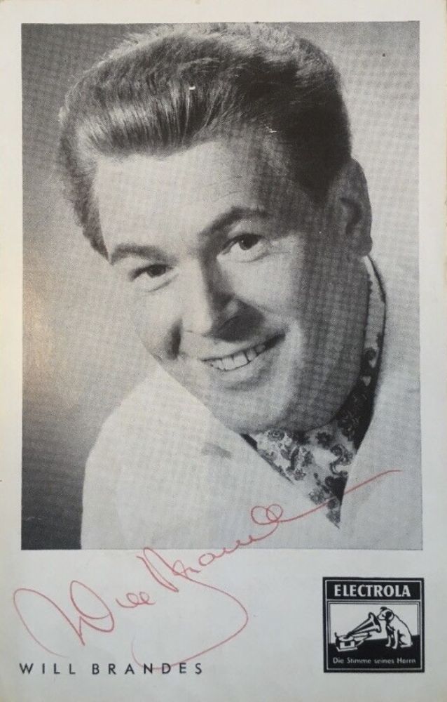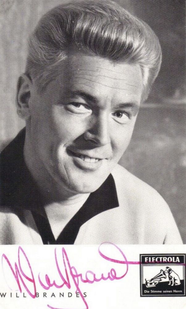 Der Schlagersänger Will Brandes wurde am 11. Jänner 1928 in Münstedt, Gemeinde Ilsede im Landkreis Peine, Niedersachsen, als Willi Brandes geboren und verstarb am 8. April 1990, erst 62-jährig, ebenda. Er ließ sich als Operntenor ausbilden, wechselte aber dann zur leichten Muse.