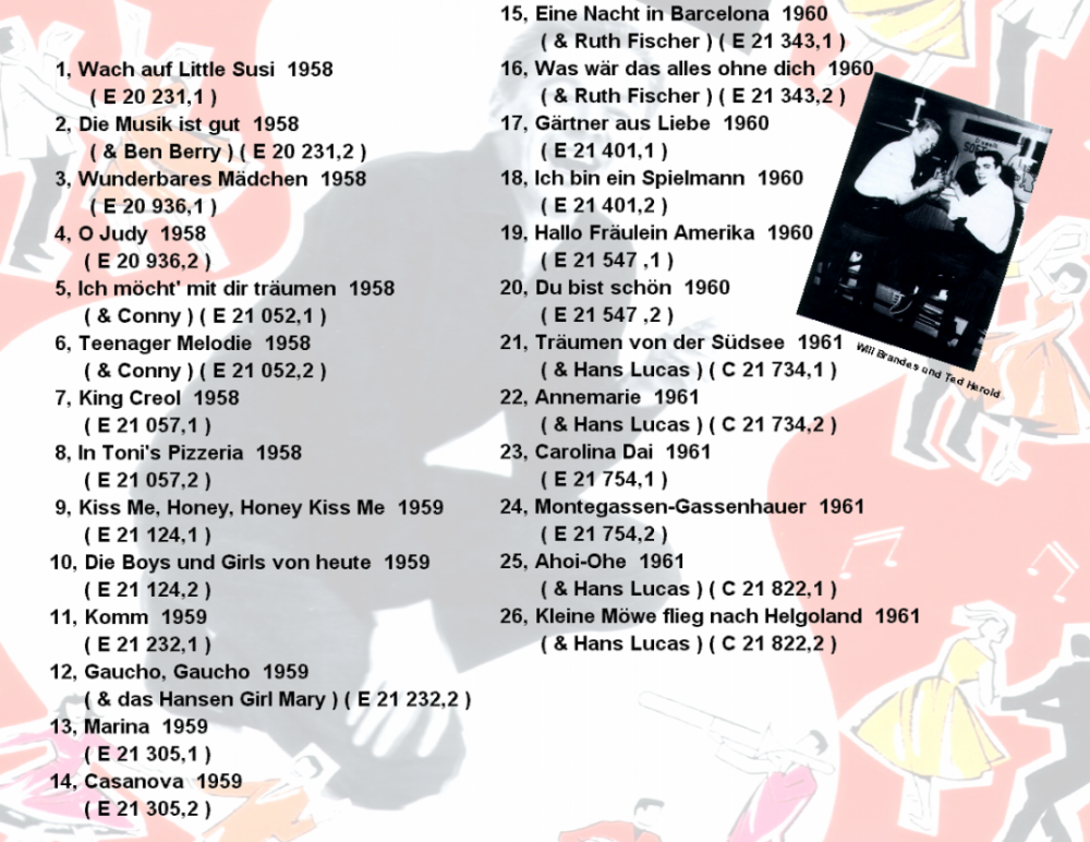 11 58....E 21 057....Will Brandes und die Hansen - Boys Berlipp's Studio - Band..King Creole/In Toni's Pizzeria