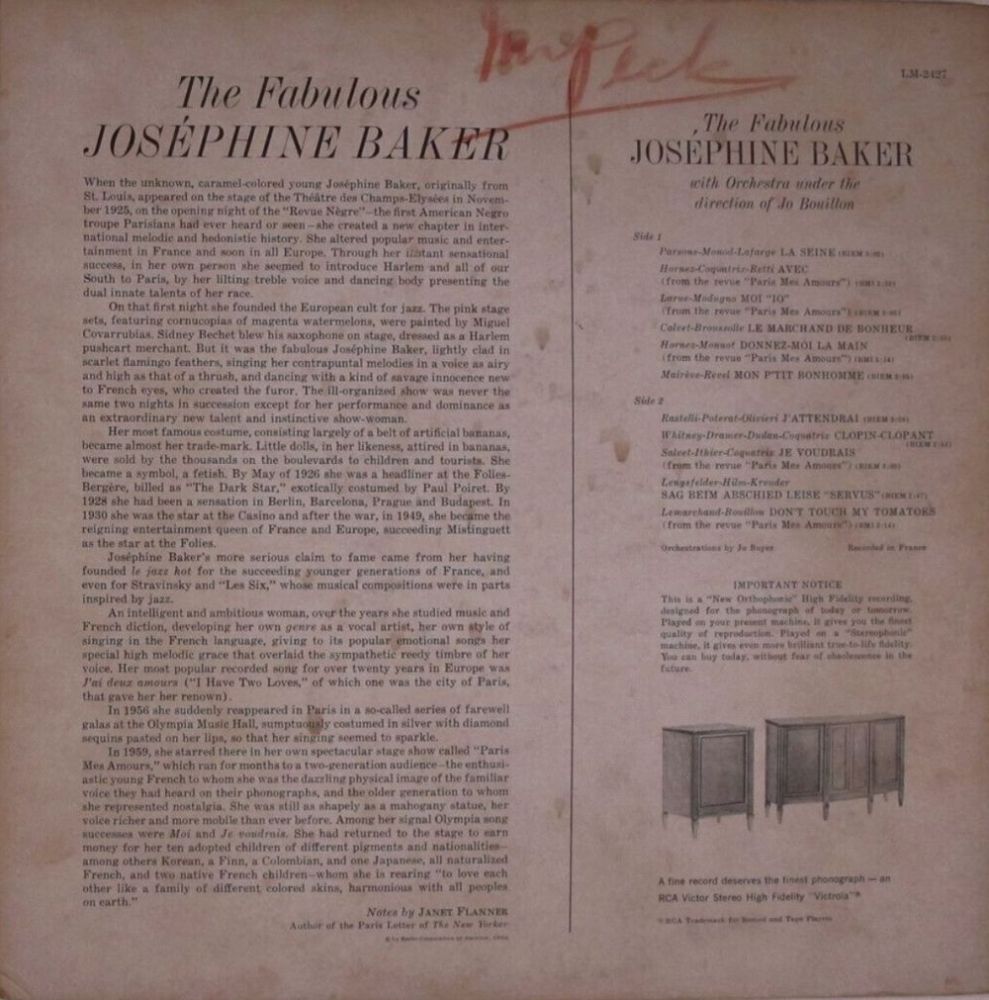 1927 erschienen Josephines Memoiren. Jetzt wird ihre Lebensgeschichte verfilmt. Josephine Baker hat sich stets darum bemüht, die Schranken und Vorurteile zwischen den Rassen zu beseitigen. Heute lebt sie eigentlich nur nash dieser Aufgabe. Seit 1945 wohnt sie auf ihrem Gut Los Milandos, dem ehemaligen Schloss des Kreuzriiters Gottfried von Bouillon in Südfrankreich, mit ihren Adoptivkindern, die verschiedenen Rassen und Konfessionen entstammen: Akio aus Korea, Luis aus Kolumbien, Moses aus Israel, Jeanne? aus Japan, Jerry aus Finnland, Jean-Claude aus Frankreich, Brahim und Marianne aus Algerien und ein Negerbaby von der Elfenbeinküste. Ihr Wohnsitz, zu dem eine riesige Bühne, Park und Schwimmbad gehören, ist fast schon zu einem Dorf angewachsen. Hier will die große Baker beweisen, dass Rassenprobleme Scheinprobleme sind. Weil sie für ihre Mission viel Geld benötigt, entschloss sie sich unlängst zu einer „endgültig letzten“ Tournee durch Westdeulschland. Diesem Entschluss verdanken wir die vorliegenden Aufnahmen, von denen das schlichte, ernsthafte Lied von den Regenbogenkindern die berühmte Chansonette einmal von einer ganz anderen Stile zeigt