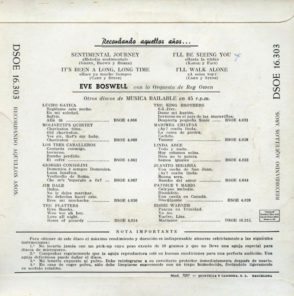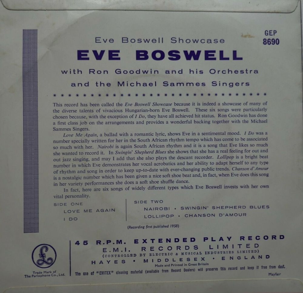 EVE BOSWELL war 1951/52 vor allem bei der BBC ein Radio-Star. Viele