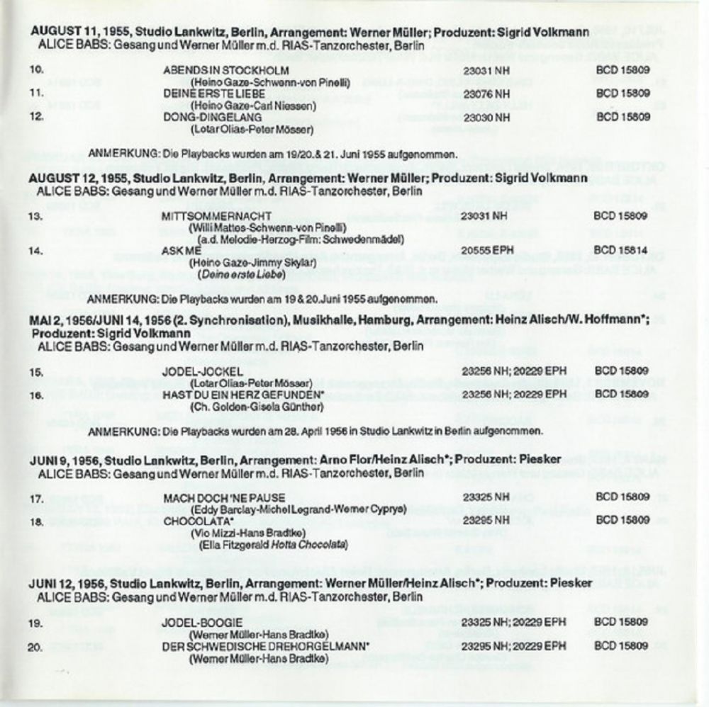 *) der falsche Name wurde zwar irgendwann auf Alice Babs korrigiert. Ob das bereits im Jahre 1956 erfolgte oder erst viel