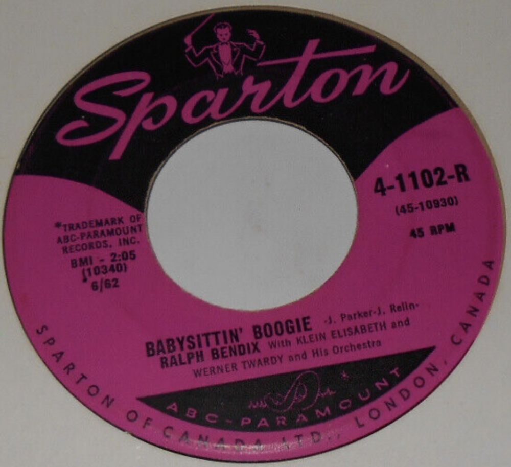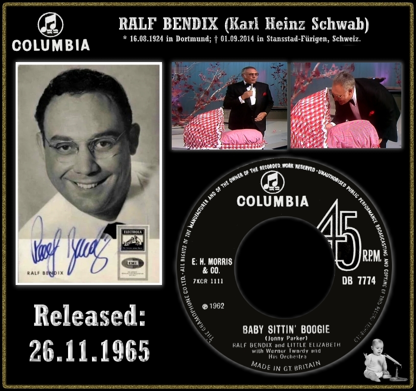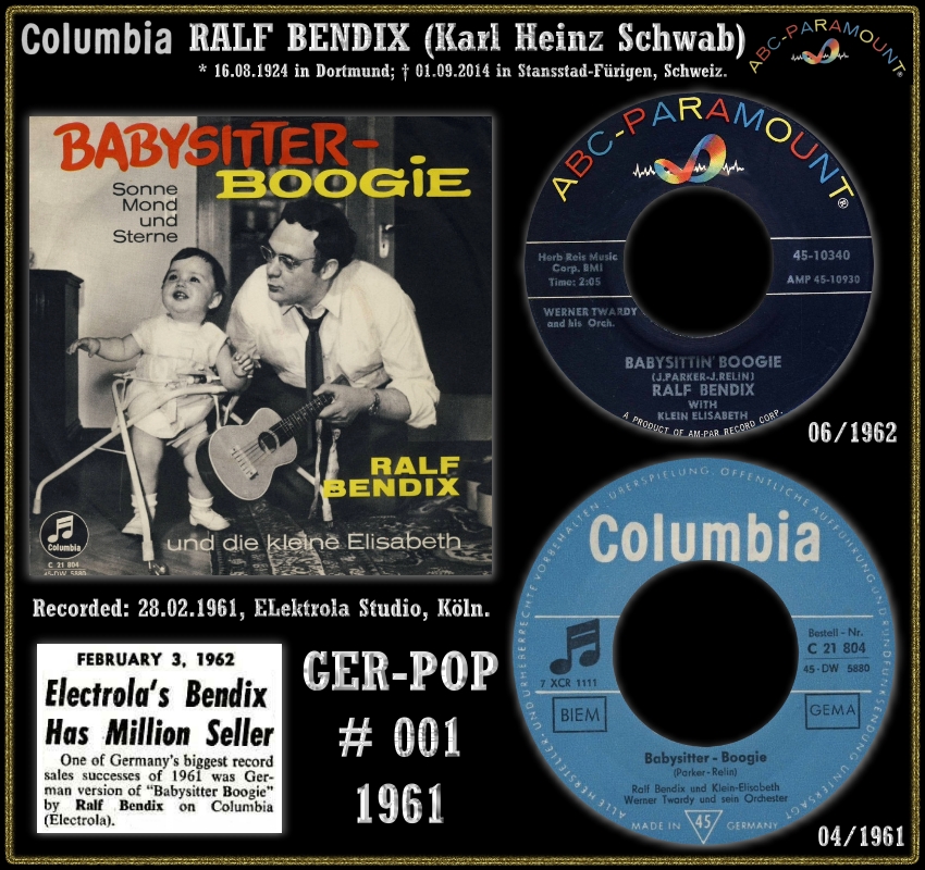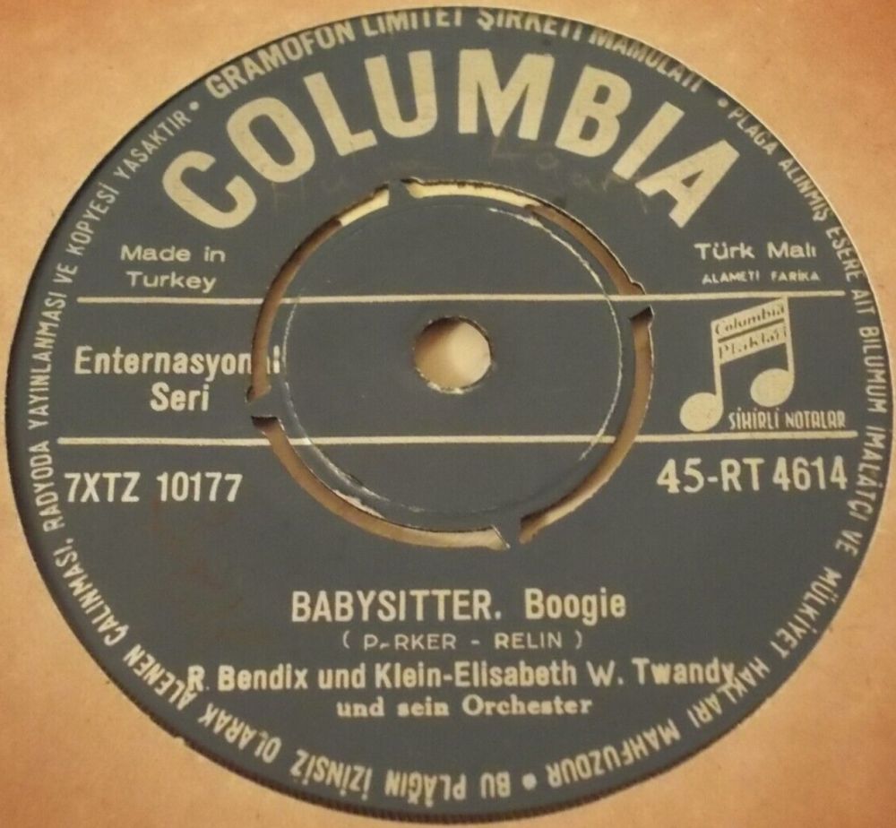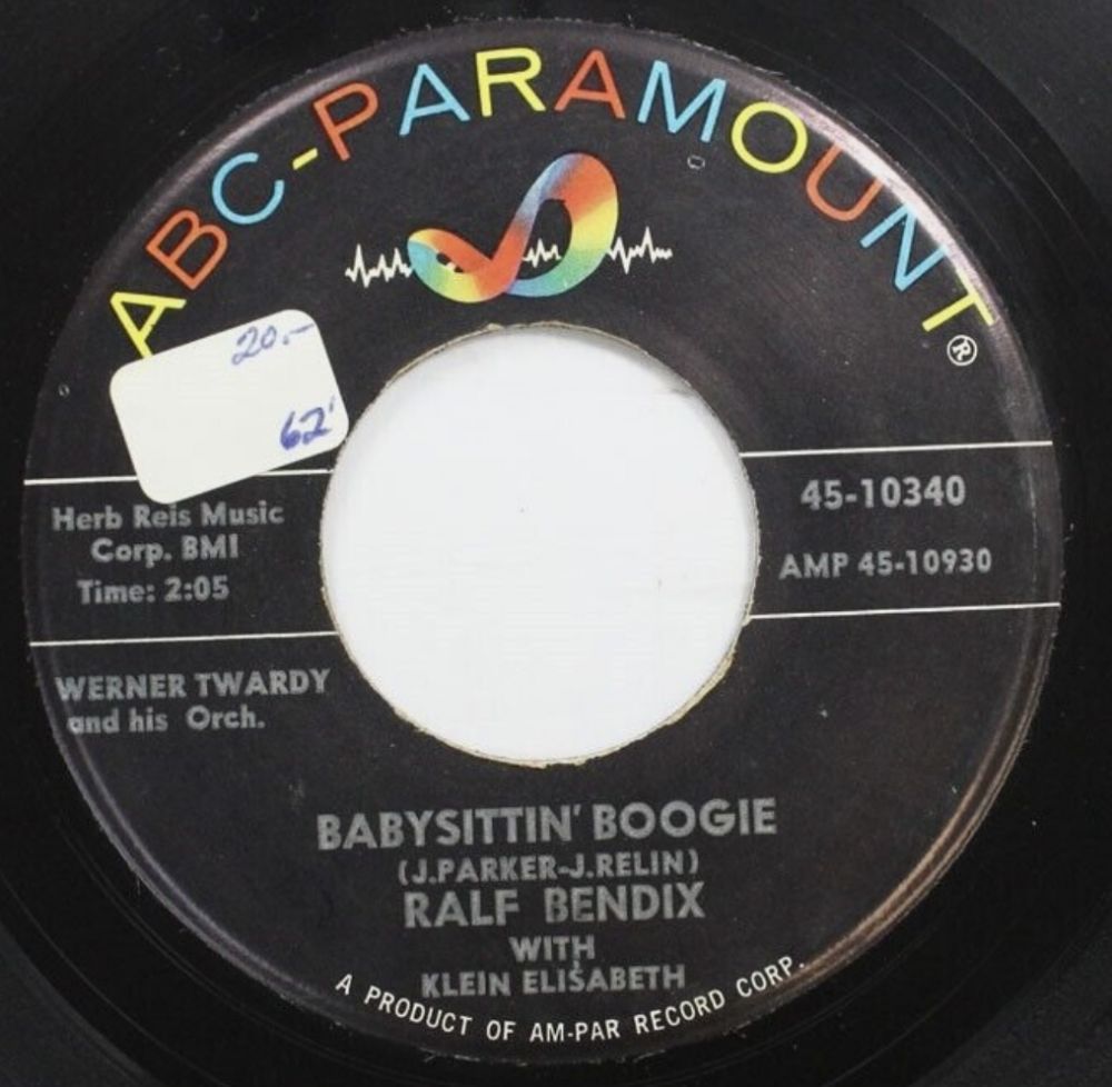 Rockin’ Pete hat mich auf die britische COLUMBIA-Single in #15 vom November 1965 aufmerksam gemacht. Zeitmäßig passt sie zwar nicht in meine Recherchierzeit, aber je mehr ich mich mit ihr befasste, umso interessanter wurde sie für mich. Aufgrund des (P) 1962 auf der Single aus 1965 nehme ich an, dass Ralf Bendix die englischsprachige Version vom Babysitter Boogie in diesem Jahr in Deutschland eingespielt hat und als Musikbegleitung wurde die Orchestereinspielung für die deutschsprachige Version aus dem Jahre 1961 verwendet. Obwohl eigentlich unüblich wäre aber das eine Erkärung dafür, dass Köln den Engländern die Matrixnummer der deutschsprachigen Version gemeldet hat und keine neue Masterung erfolgte. Die Engländer haben nicht nur die obskure Matrix, sondern auch den falsch geschriebenen Autor Jonny Parker übernommen. Den Vornamen haben sie allerdings irgendwann später auf Johnny korrigiert.