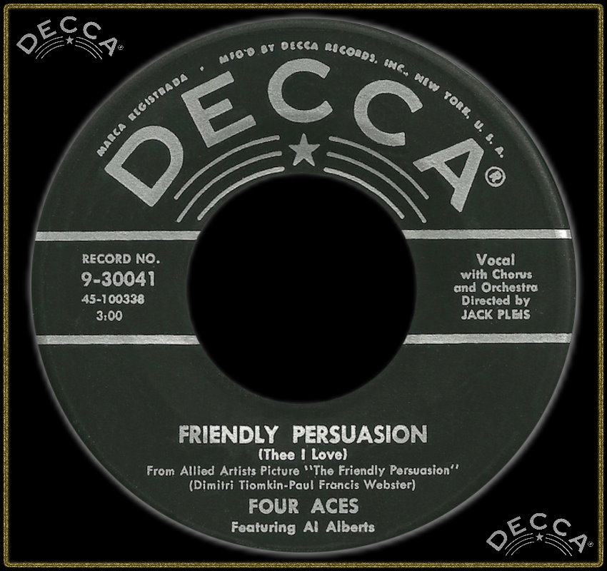 08 56....9-30041....FOUR ACES Featuring Al Alberts..Friendly Persuasion (Thee I Love) (45-100338)/You Can't Run Away From It (45-89735)