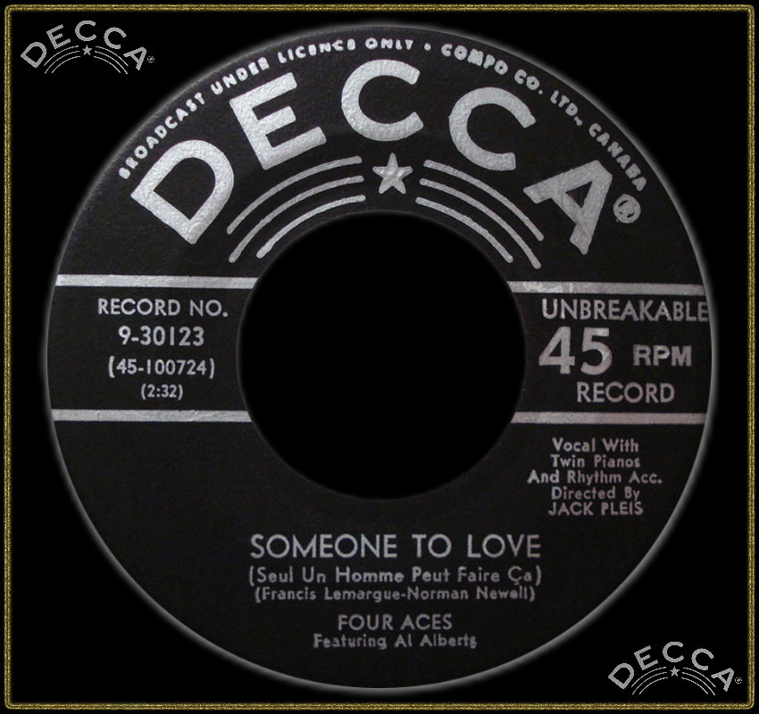 10 56....9-30123....FOUR ACES Featuring AL ALBERTS..Someone To Love (Seul Un Homme Peut Faire Ca) (45 100724)/Written On The Wind (45 89734)