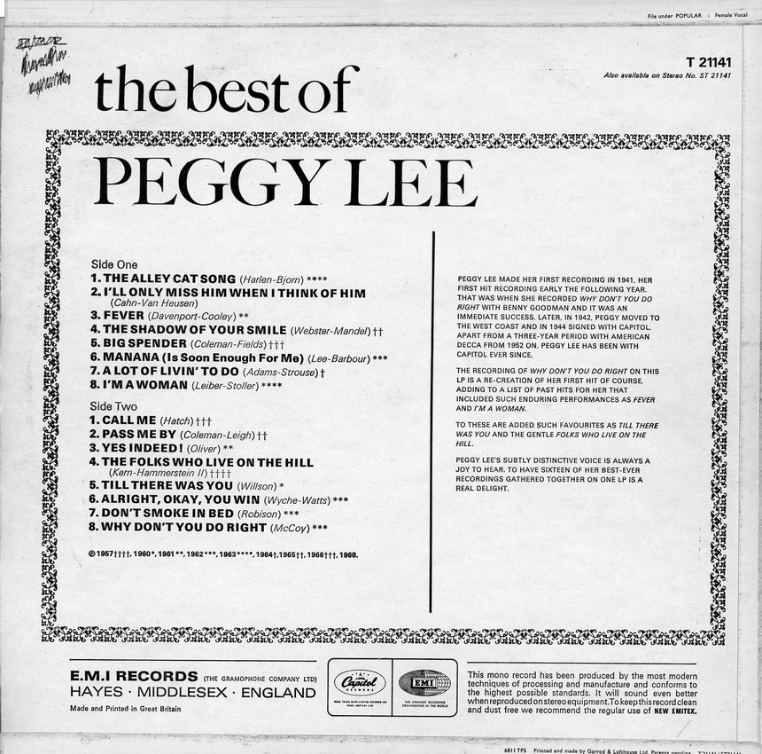 PEGGY LEE - BOULEVARD CAFE Anhänge an diesem Beitrag Dateiname: PEGGY LEE - BOULEVAR … #002.jpg Dateigröße: 108.41 KB Titel: PEGGY LEE - BOULEVARD CAFE_IC#002.jpg Information: PEGGY LEE - BOULEVARD CAFE Heruntergeladen: 221 Dateiname: PEGGY LEE - BOULEVAR … #001.jpg Dateigröße: 143 KB Titel: PEGGY LEE - BOULEVARD CAFE_IC#001.jpg Information: PEGGY LEE - BOULEVARD CAFE Heruntergeladen: 212