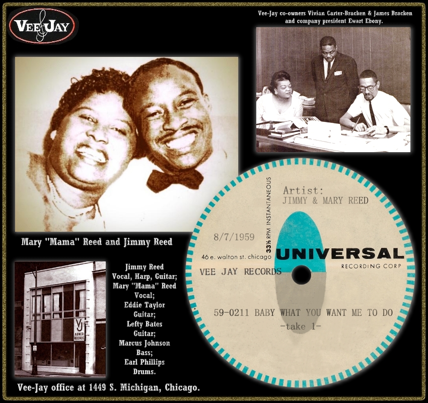 Da immer wieder VEE-JAY als Jimmy Reed's erstes Label genannt wird wollte ich darauf aufmerksam machen, dass seine ersten Einspielungen bei CHANCE erfolgten. Bei den dafür notwendigen Recherchen bin ich jedoch auf extreme Widersprüche gestoßen und auf Daten die hinten und vorne überhaupt nicht zusammenpassen. Ich habe daher versucht, diese Angelegenheit in eine wenigstens plausibel erscheinende Form zu bringen.