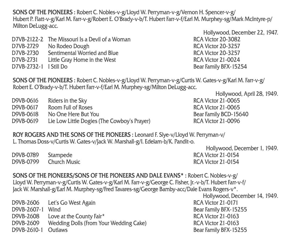 Dies ist der 23. Band der Aufnahmen der Sons of the Pioneers in chronologischer Reihenfolge. Angesichts der Popularität der Pioneers ist es nicht verwunderlich, dass ein drohender Musikerstreik RCA Victor dazu veranlasste, sich zu bemühen, so viel Studiozeit wie möglich für die Pioneers zu buchen. Daher war 1947 ein sehr arbeitsreiches Aufnahmejahr für die Gruppe, in dem sie fünfzig Songs einspielten. Zu den großartigen Stücken, die sie in diesem Jahr aufnahmen, gehörten auch einige wundervolle geistliche Lieder, wie zum Beispiel Tim Spencers “Too High Too Wide Too Low“, das später auf dem Album “Cowboy Hymns and Spirituals“ veröffentlicht wurde. Außerdem nahmen die Pioneers eine großartige Version von Billy Hills “The Last Round-Up“ auf.
