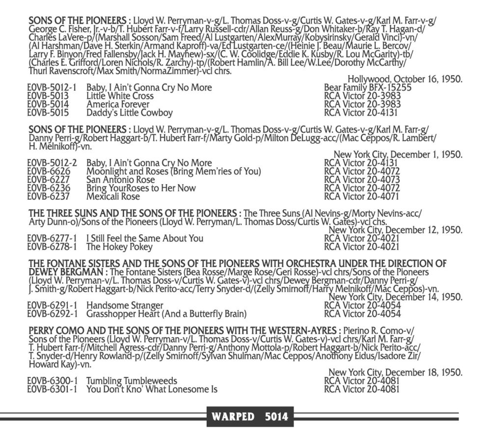 Erst im Dezember des darauffolgenden Jahres nahmen die Pioneers wieder auf. Die Verzögerung ist auf den Streik der American Federation of Musicians zurückzuführen, der am 01. August 1942 begann und die Aufnahmen für etwa achtzehn Monate unterbrach.