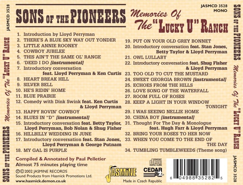 Dies ist die neunzehnte CD mit Aufnahmen der Sons of the Pioneers in chronologischer Reihenfolge. Diese Edition setzt die Dokumentation der Transkriptionen fort, die die Sons of the Pioneers für NBCs Sendung “The Country Music Hall of Fame“ anfertigten.