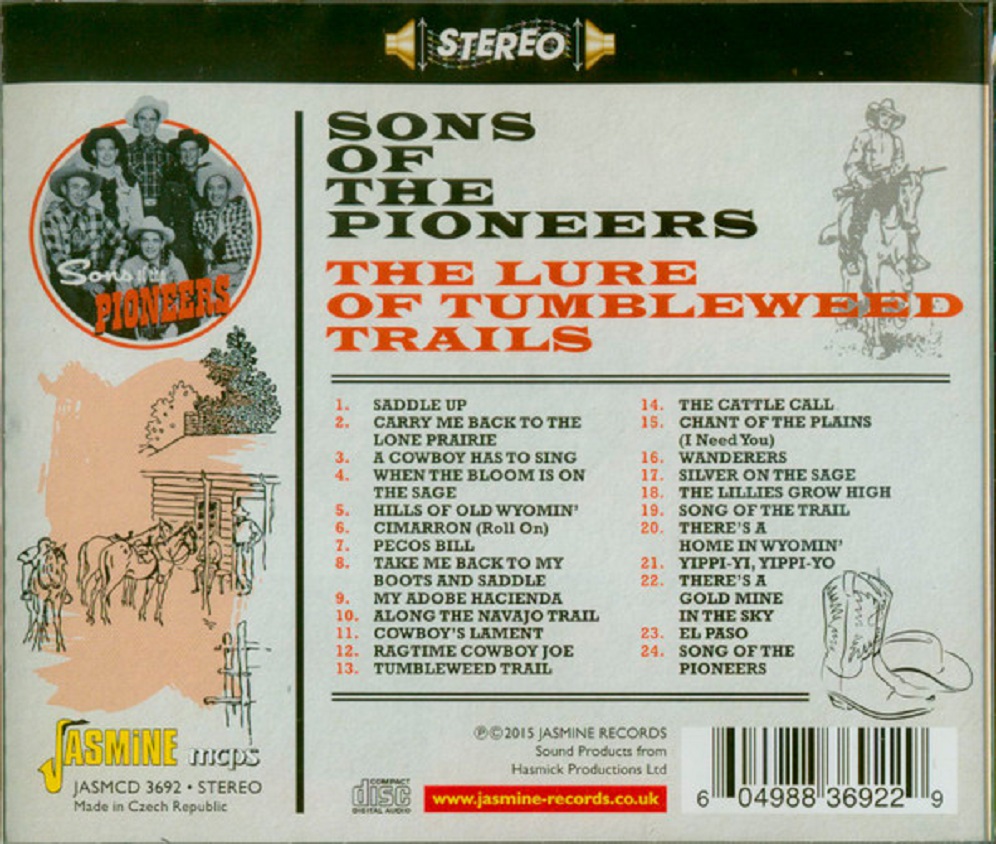 Wie der Name schon sagt, waren viele der für diese Reihe aufgenommenen Stücke dem Western-Genre zuzuordnen. Das heißt aber nicht, dass das Repertoire eintönig war. Ein Höhepunkt dieser CD ist das Instrumentalstück “Farr Into the Night“, das Karl Farrs virtuoses Gitarrenspiel eindrucksvoll unter Beweis stellt. Wer die komplexen Trio-Harmonien der Pioneers mag, wird von Stücken wie “Bound for the Rio Grande“ nicht enttäuscht sein.