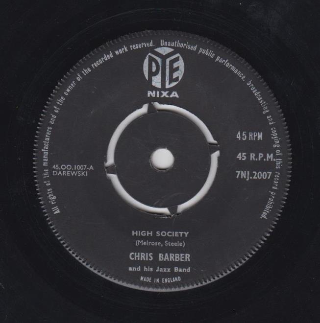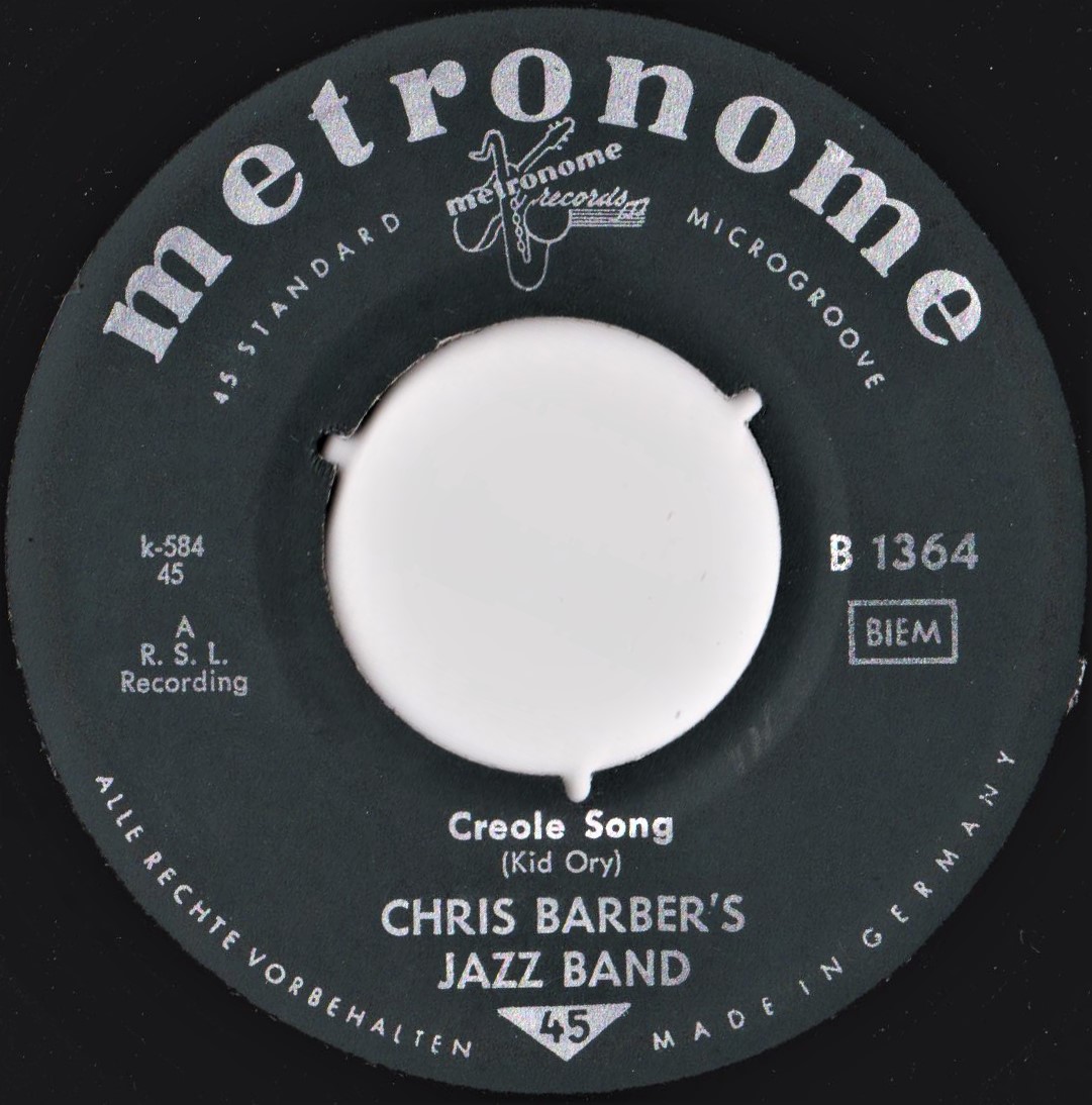 10 59....A 45000....CHRIS BARBER'S JAZZBAND Pat Halcox, tp, vo; Lonnie Donegan, bjo; Jim Bray, b; Chris Barber, tb; Monty Sunshine, cl; Ron Bowden, dm. Rec. 9-10-55..Ice Cream (45-CB 6)/CHRIS BARBER'S JAZZBAND Chris Barber, tb, vo; Lonnie Donegan, bjo; Jim Bray, b; Pat Halcox, tp; Monty Sunshine, cl; Ron Bowden, dm. Rec. 9-10-55..Down By The Riverside (45-CB 4) (DK: STORYVILLE KB 213 [78])