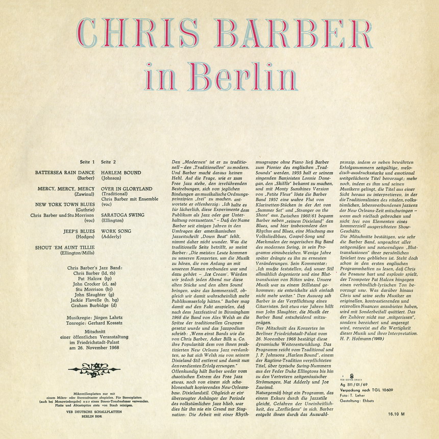 Besetzung auf EP-Hülle: Chris Barber (trombone), Pat Halcox (trumpet), Monty Sunshine (clarinet), Eddie Smith (banjo), Dick Smith (bass), Graham Burbidge (drums)