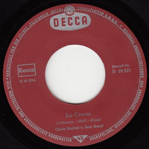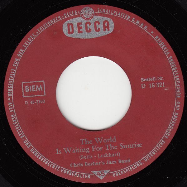 01 57....D 18 321....Chris Barber's Jazz Band..The World Is Waiting For The Sunrise/Ice Cream (UK: DECCA 10724/EP 6344)