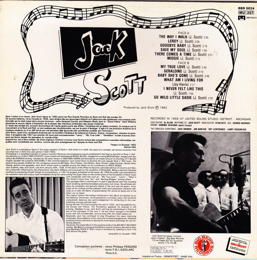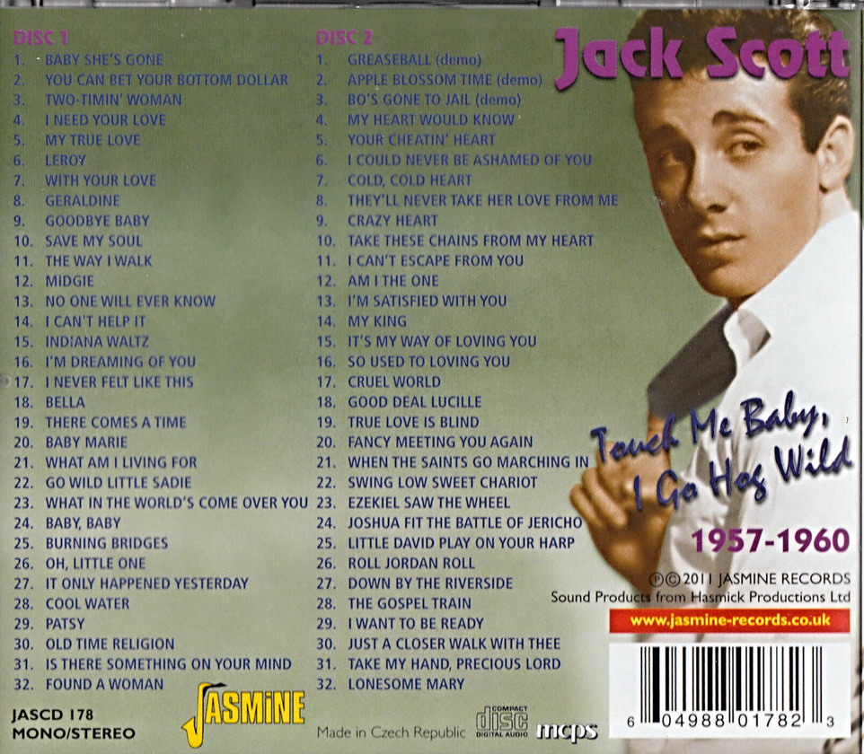 Wie ich erst Jahrzehnte später erfahren habe, hatten wir Jack Scott's ersten Titel "Baby, She's Gone" bereits bei unseren Singles dabei, allerdings nicht von Jack Scott, sondern von dem Engländer Terry Dene. Wir hatten natürlich überhaupt keine Ahnung, aber bevor wir, wenn überhaupt, "Lucky Lucky Bobby" auflegten, kam erst einmal "Baby, She's Gone" zum Zug und das zeigt mir, dass die meisten Scott-Titel auch dann faszinierend waren, wenn sie von einem anderen Interpreten gebracht wurden.