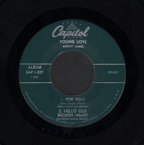 CAPITOL - THE STAR LINE 12 63....6041....SONNY JAMES..Young Love (45-16003)/Hello Old Broken Heart (45-15781) (3602/3542)