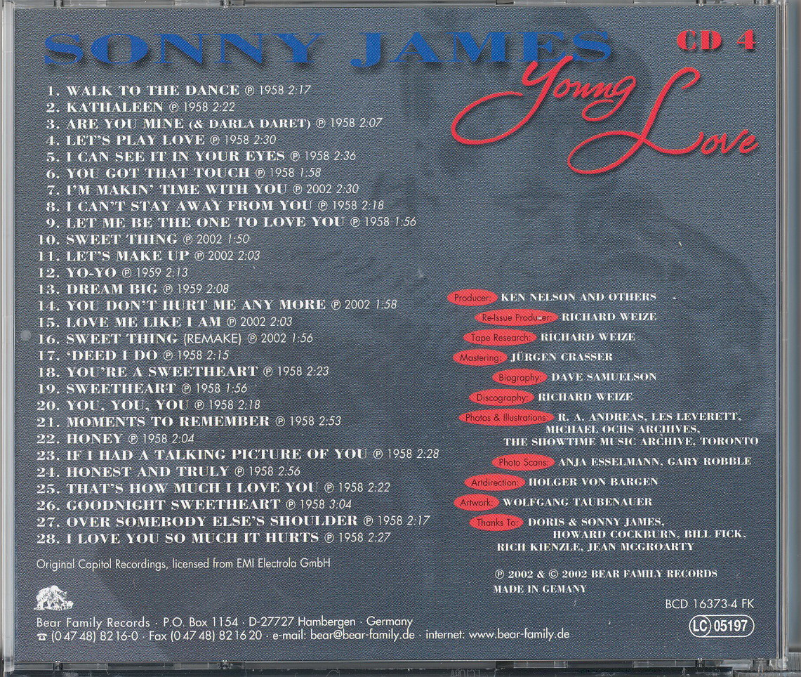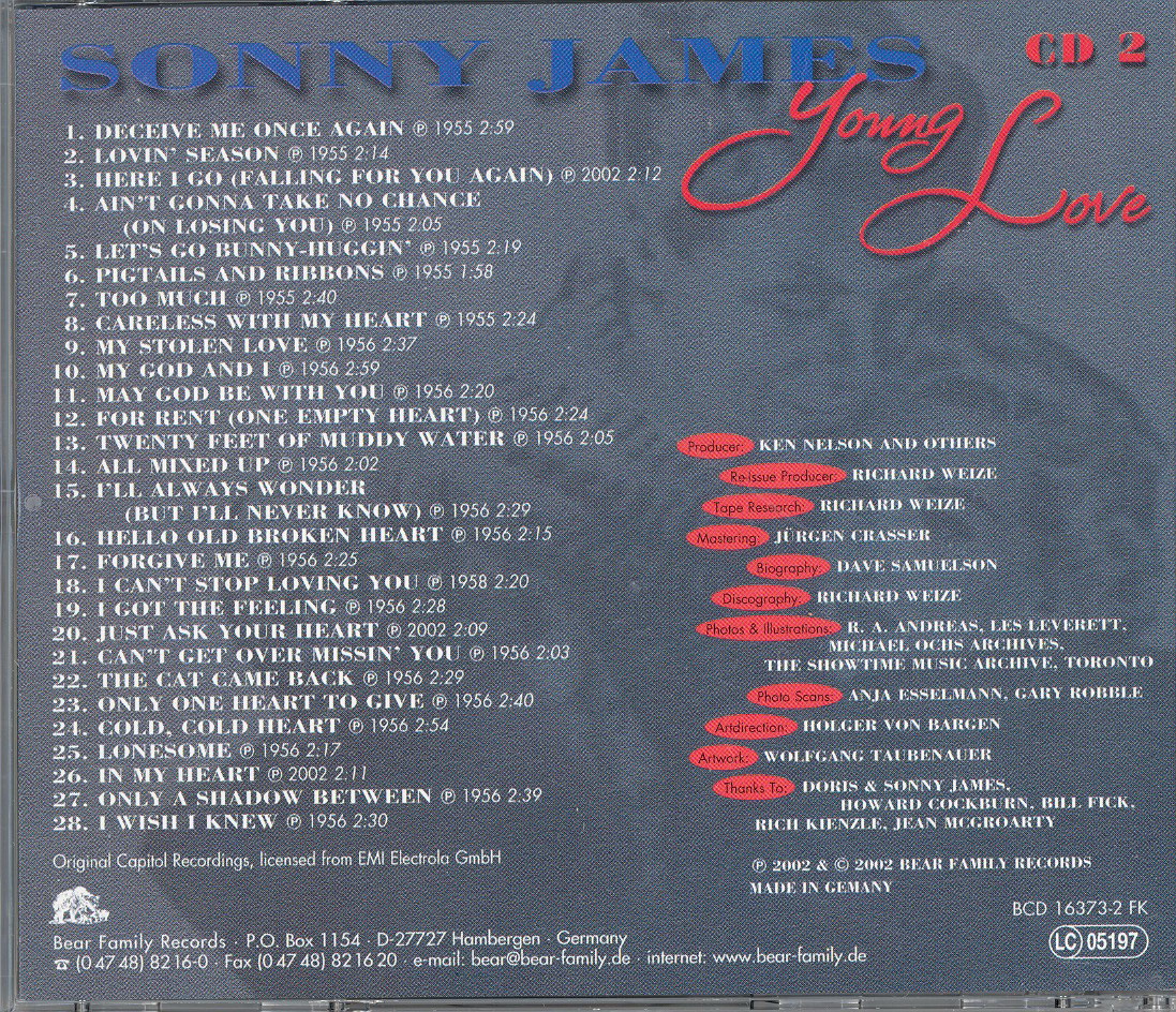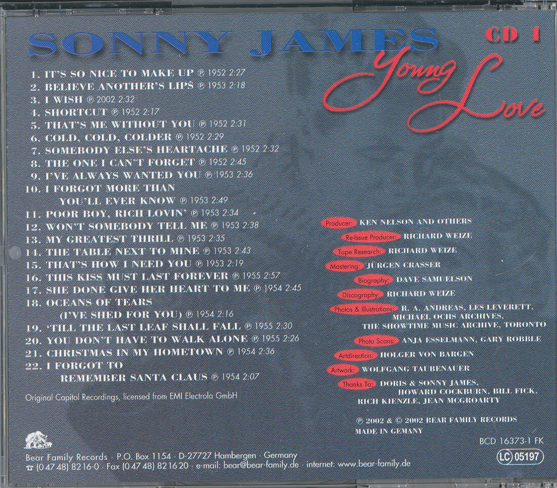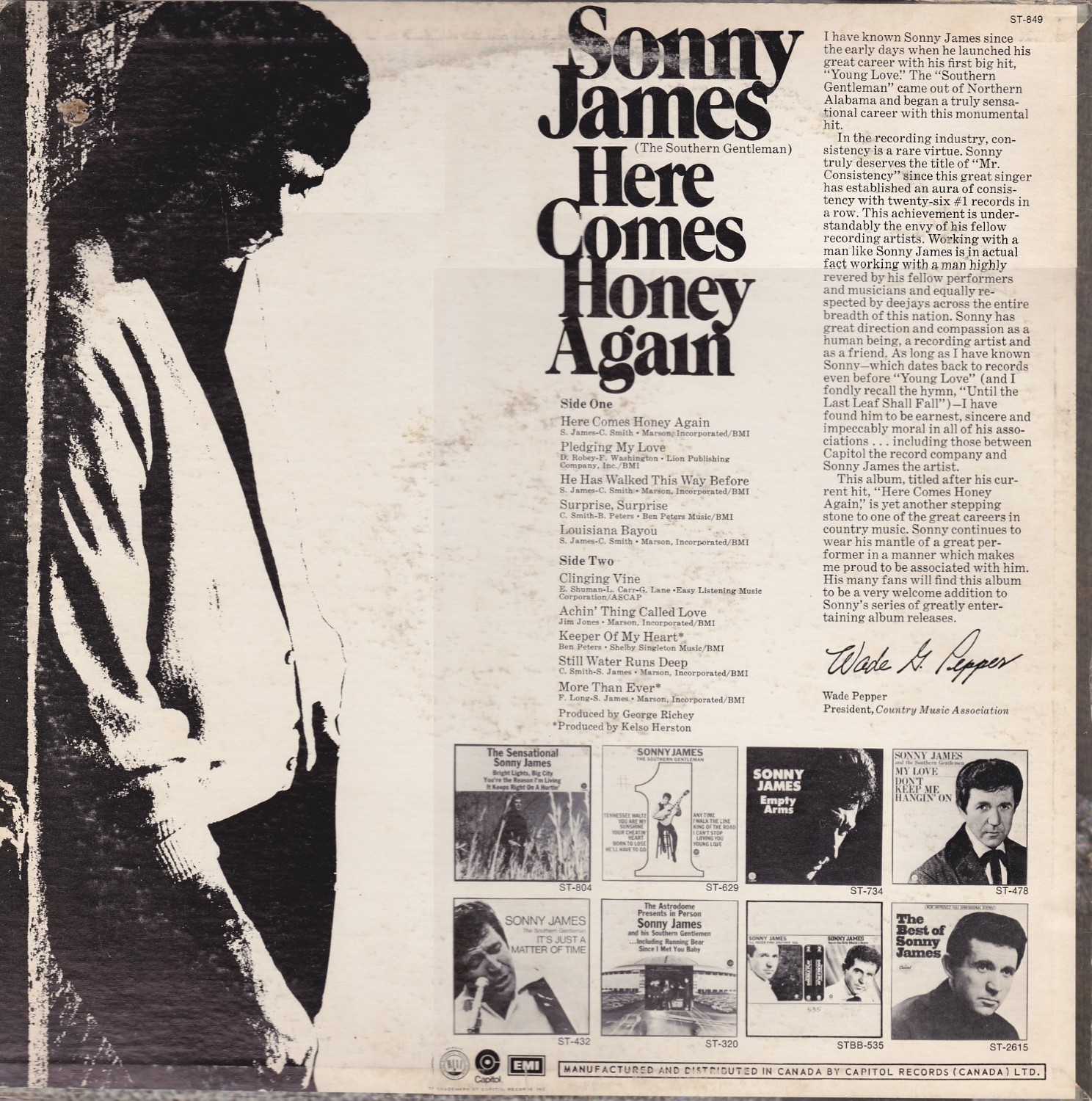 Kurz-Bio (mit Ergänzung aus gegebenem traurigen Anlass): Der Country-Sänger und führende Interpret des "Nashville Sounds" Sonny James wurde am 1. Mai 1928 in Hackleburg, Alabama, als James Loden geboren und verstarb am 22. Februar 2016 in Nashville, Tennessee. Schon als Kind wurde er "Sonny James" gerufen und dieser Spitzname wurde dann zu seinem Bühnen- und Markennamen.