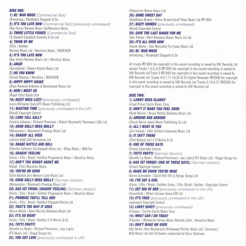 Das im Juni 1963 auf EMIs HMV-Label veröffentlichte Album “It's Too Late Now“ bescherte der Gruppe ihren ersten Hit, als es # 30 erreichte. „Ich war Fernsehverkäufer, wir hatten einen Tischler, einen Klempner und einen Automechaniker in der Band und wir dachten, das war’s, wir sind fürs Leben gemacht, lasst uns den Job aufgeben. Es war ein tolles Gefühl“, sagt Ennis.