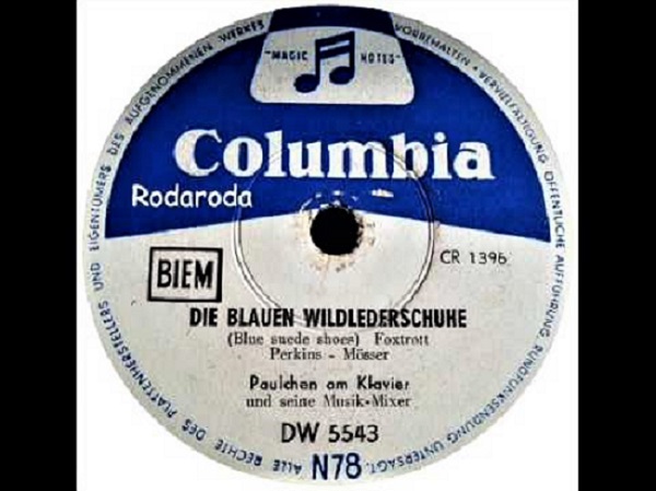 Paulchen als Rock'n Roller - da dürfen die blauen Wildlederschuhe nicht fehlen. Ob die Aufnahme Carl Perkins gefallen hat? Auf jeden Fall, eine meiner Lieblingsscheiben, auch wegen der B-Seite "Swing Hei" ...