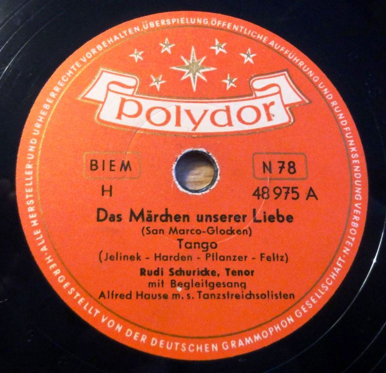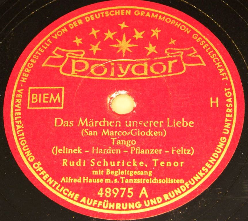 02 54....22 010 A....Rudi Schuricke, Tenor Alfred Hause m. s. Tanzstreichsolisten..Das Märchen unserer Liebe (San Marco-Glocken)/ B....Im Hafen der Sehnsucht