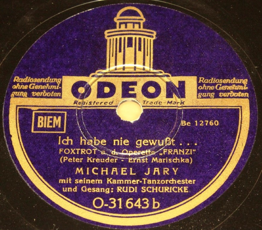 06 54....22 072 A....Rudi Schuricke, Tenor Waldo Favre-Chor Großes Operetten-Orchester Ltg.: H. Zacharias..„Der Zarewitsch" (Lehár) Wolgalied/ B....„Die Zirkusprinzessin" (Kálmán) Zwei Märchenaugen