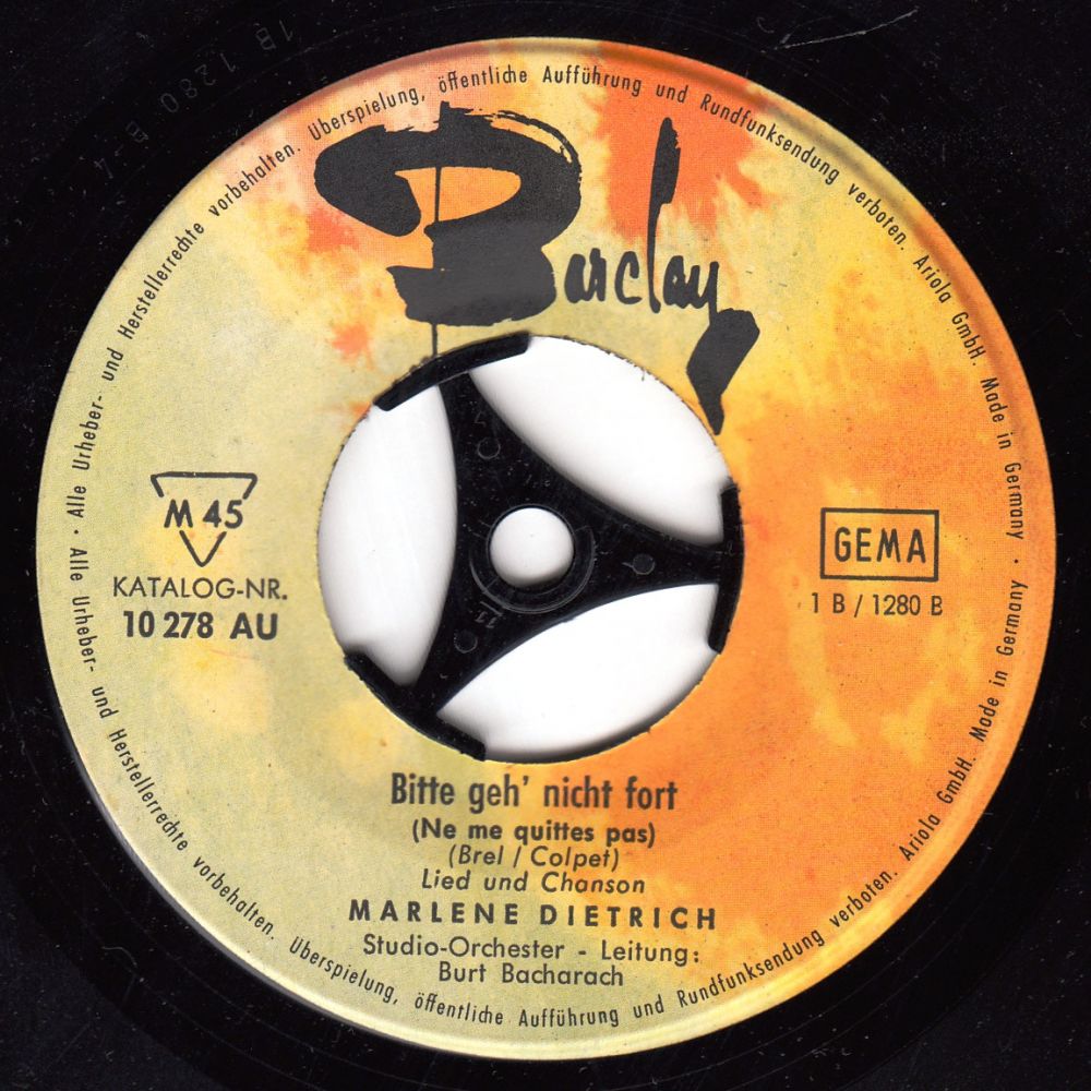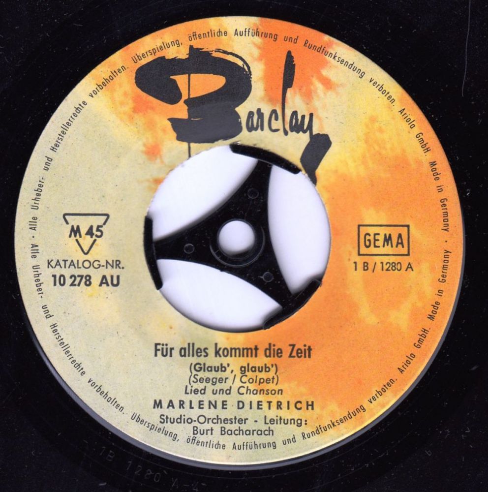 08 63....10 278 AU....MARLENE DIETRICH Studio-Orchester - Leitung: Burt Bacharach..Für alles kommt die Zeit (Glaub', glaub') (1 B / 1280 A)/Bitte geh' nicht fort (Ne me quittes pas) (1 B / 1280 B)