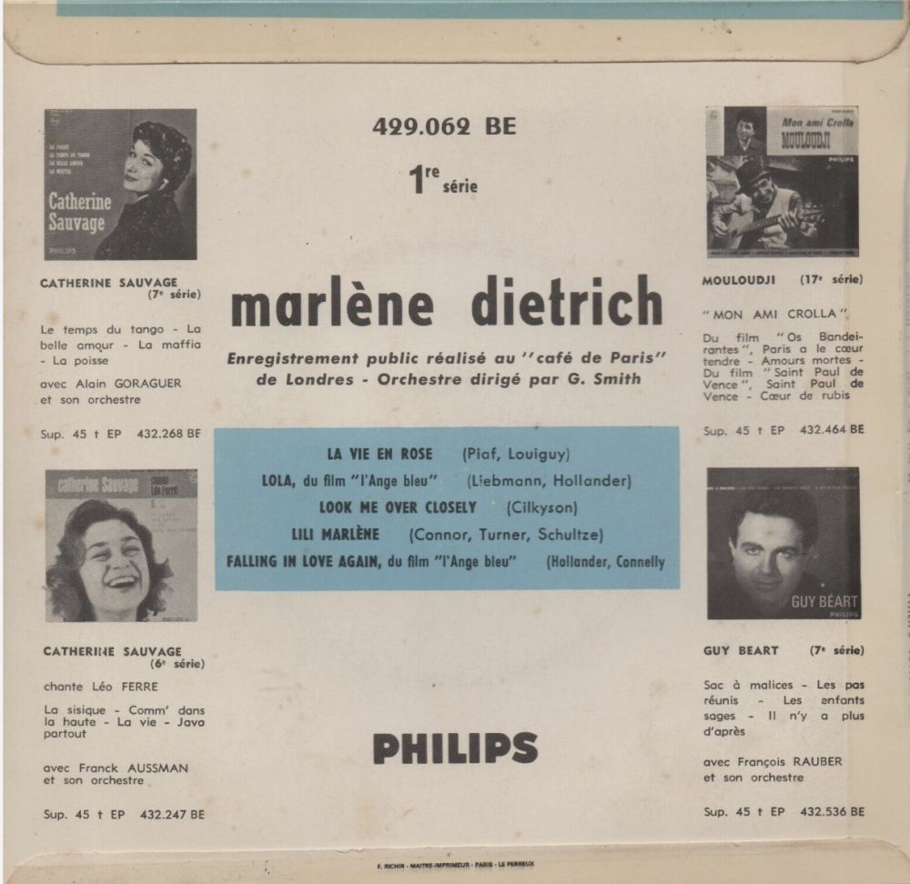 06 60....327 203 BF....MARLENE DIETRICH..Lili Marlene/Das Lied ist aus (Frag’ nicht warum ich gehe) (GB: PHILIPS LP BBR.8006)
