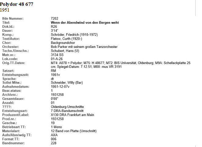 Mit den detaillierten Anhängen möchte ich den Beitrag 14 ergänzen. Sind diese beiden Titel aus dem Jahr 1951 mit Willy Schneider und dem Orchester Bob Parker eigentlich jemals veröffentlicht worden?