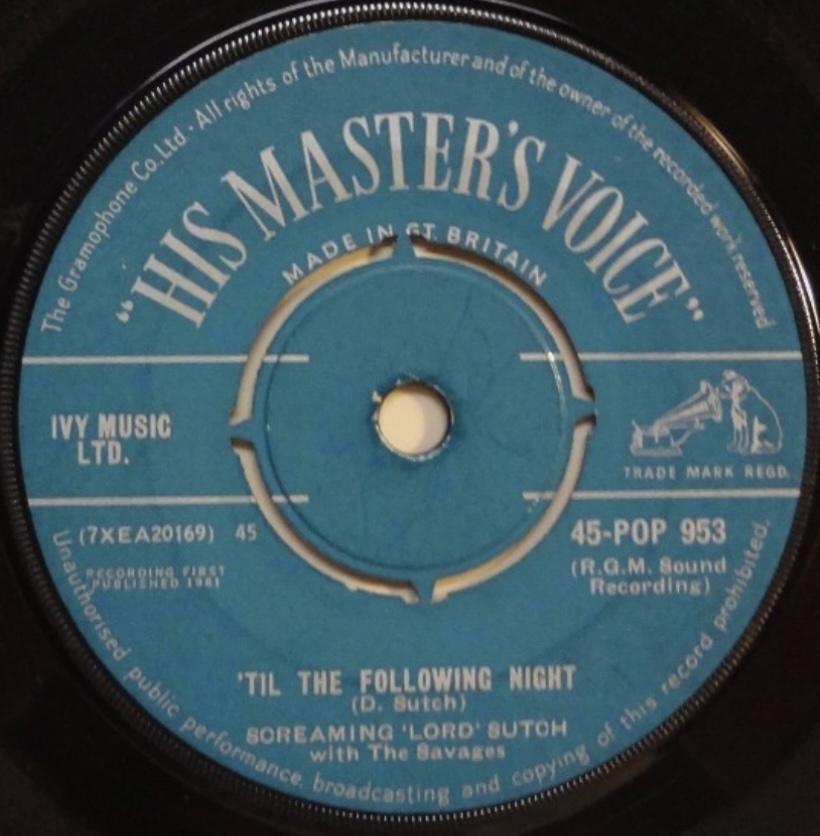 Screaming Lord Sutch & The Savages Till The Following Night 3.23 HMV 45-POP 953 1961
