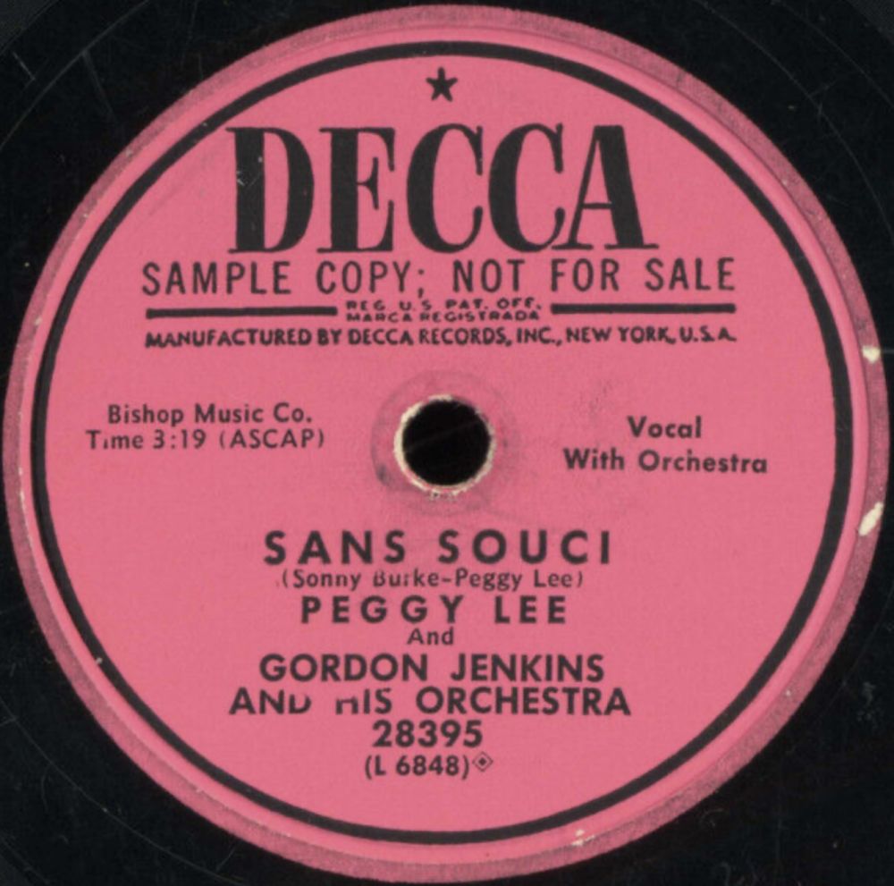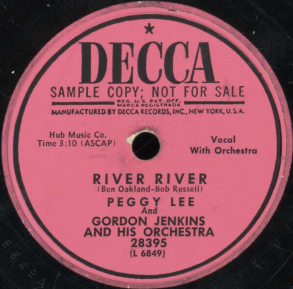 09 52....9-28395....PEGGY LEE and GORDON JENKINS AND HIS ORCHESTRA..Sans Souci (45-L 6848)/River River (45-L 6849)
