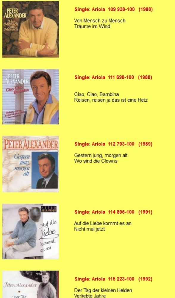 Ich werd ja seit vielen Jahren weitläufig als "den größten" Peter Alexander Experten betitelt ... ich will das nicht bewerten, Eigenlob stinkt zudem, aber ich kenn mich wohl einigermaßen gut aus, was seine Schellackplatten, Singles und EPs, sowie Memorabilia betrifft ...