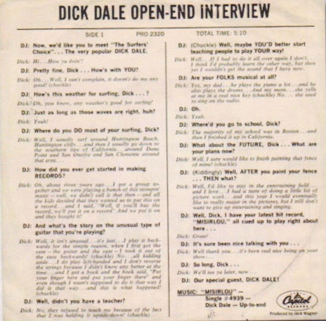 In dem o.a. Buch "Surfbeat" schreibt McParland, dass Anfang 1958 Dick Dale