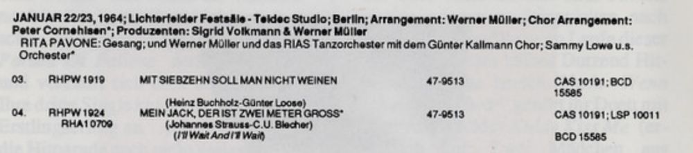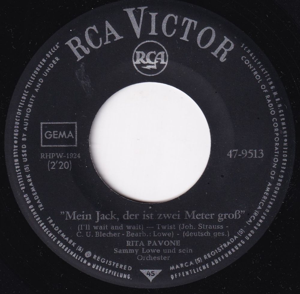 03 64….47-9513….RITA PAVONE Sammy Lowe und sein Orchester..Mein Jack, der ist zwei Meter groß (I’ll wait and wait)/RITA PAVONE Werner Müller und sein Orchester..Mit 17 soll man nicht weinen