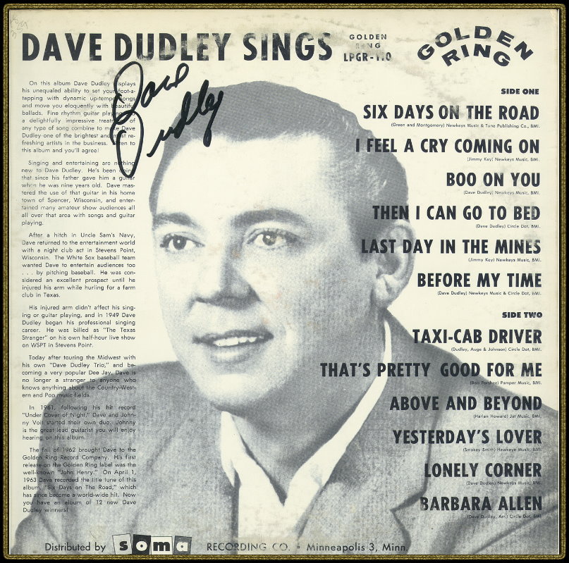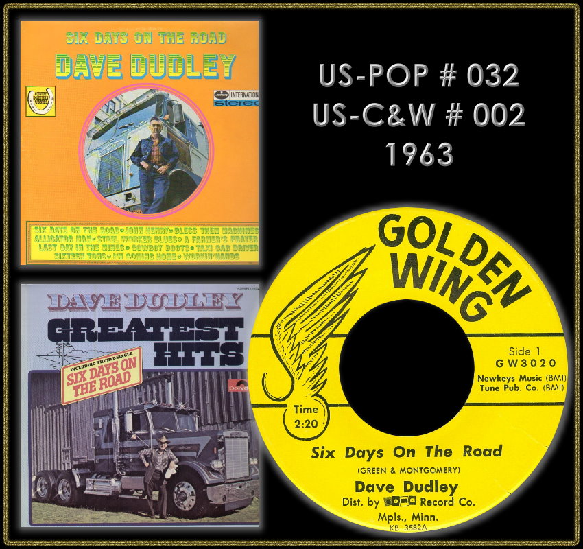 In 1963, "Six Days on the Road," became a hit for Dudley. The song was written by Earl Green and Peanut Montgomery. It sold over one million copies, and was awarded a gold disc.