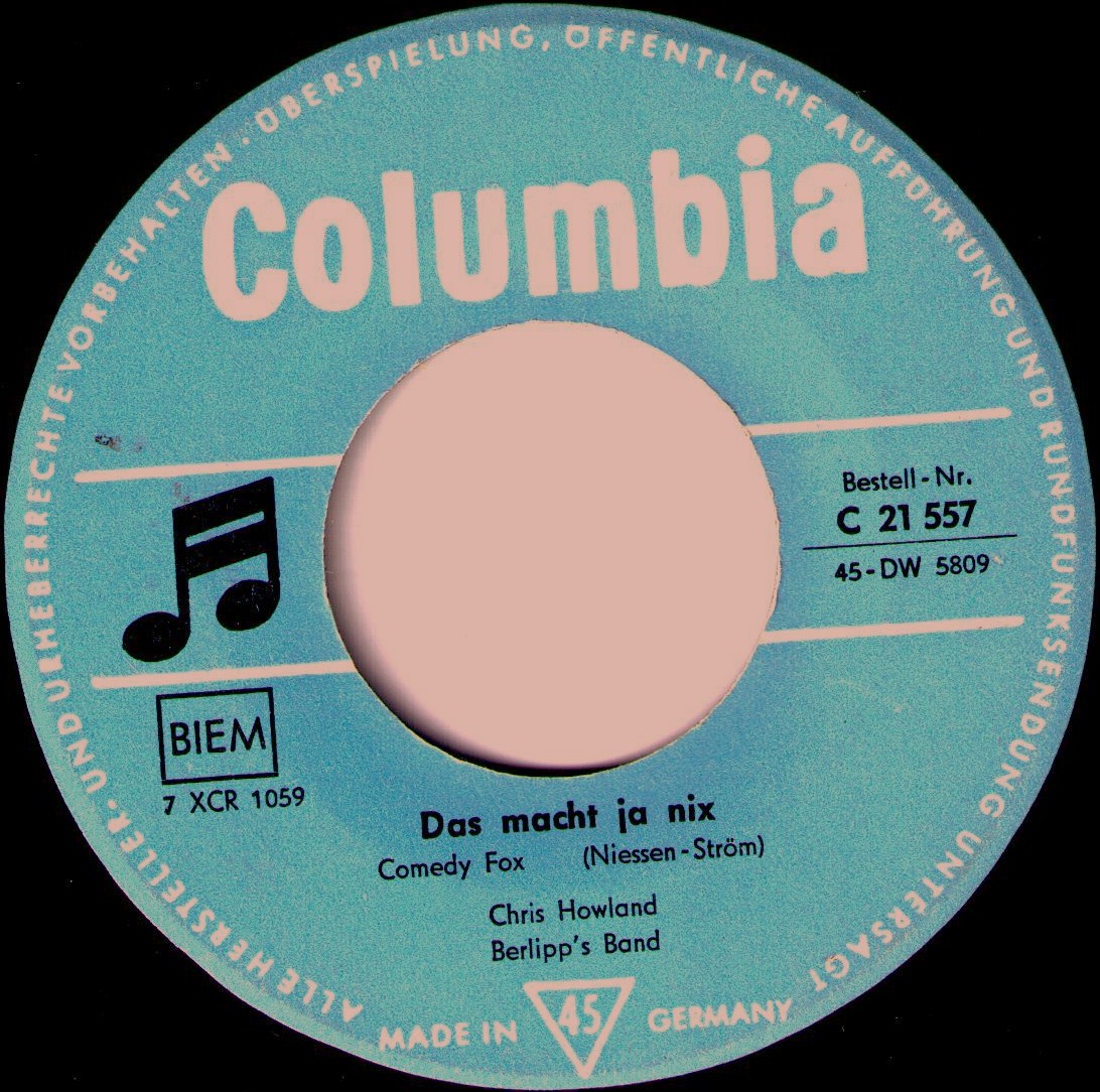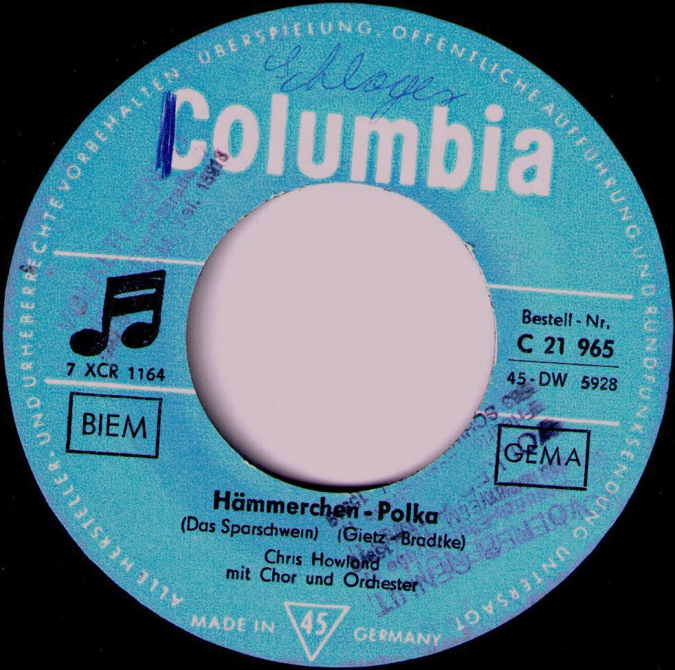 hier noch das Cover von der "Hämmerchen-Polka", sowie weiteres von "Heinrich Pumpernickel", darunter eine englisch gesungene Version von Robin Lukes "Susie Darlin'", gepaart mit Howlands Fassung von Teresa Brewers "The Rain Falls On Ev'rybody" (bei beiden Aufnahmen wird er von Norrie Paramor unterstützt, es scheinen also englische Produktionen zu sein).