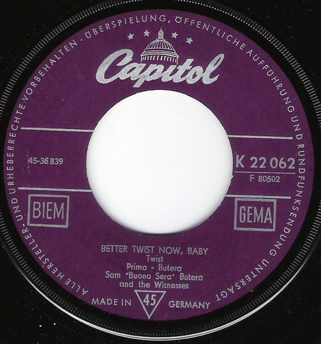 Anbei ein Scan der einzigen Platte, die ich von Butera (ohne Prima, der allerdings als Songschreiber doch irgendwie dabei ist) habe. Leider habe ich die Single ohne Picture Sleeve.