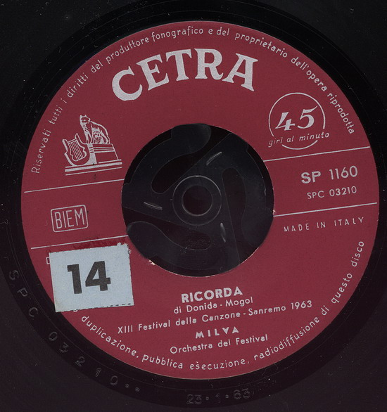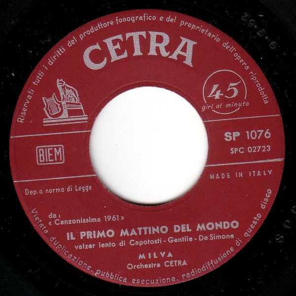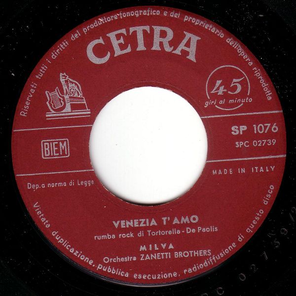 ?? 61....SP 1076....MILVA Orchestre ZANETTI BROTHERS..Venezia t'amo (SPC 02739)/MILVA Orchestre CETRA..Il primo mattino del mondo (SPC 02723) (-----/1068)