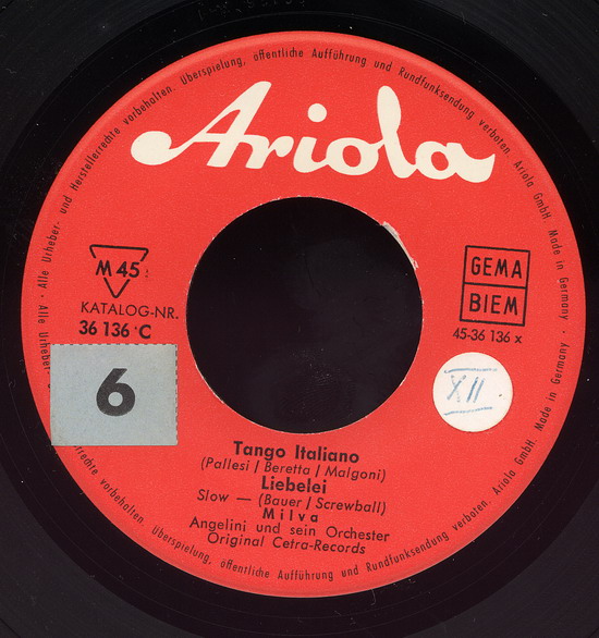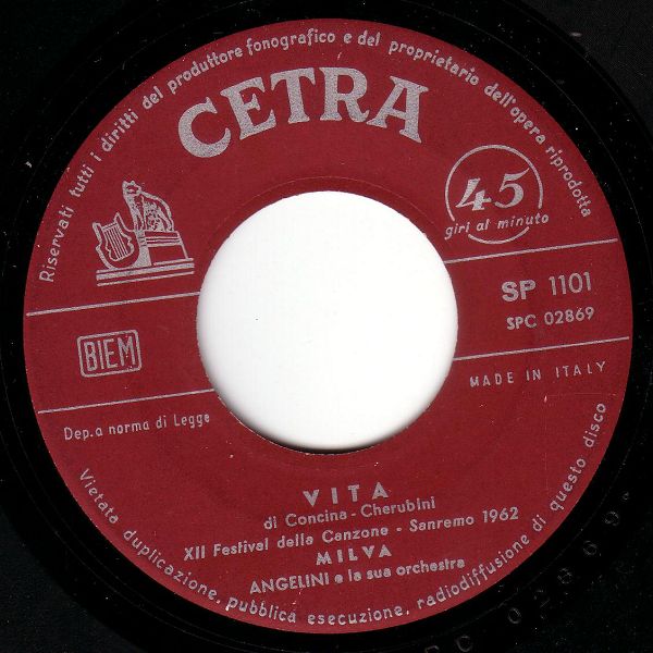 01 62....SP 1101....MILVA ANGELINI e la sua orchestra..Tango Italiano (SPC 02868)/Vita (SPC 02869)