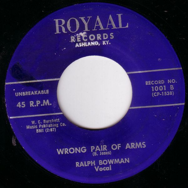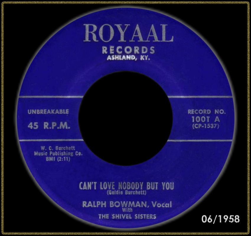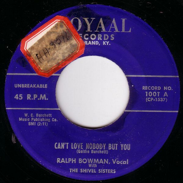 ?? 62....1001....RALPH BOWMAN AND THE SHIVEL SISTERS..Can't Love Nobody But You/Wrong Pair Of Arms (ROYAAL 1001)