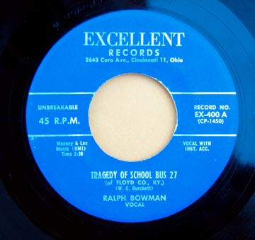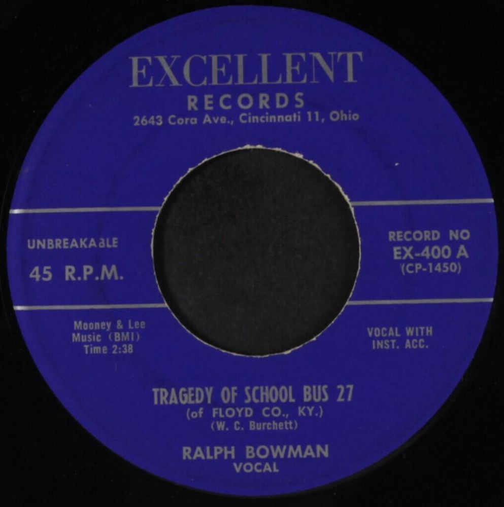 05 58….EX-400 A….RALPH BOWMAN VOCAL..Tragedy Of School Bus 27 (of FLOYD CO., KY.) (CP-1450)/ B….RAY LUNSFORD Electric Mandolin..Shelia (CP-1451)