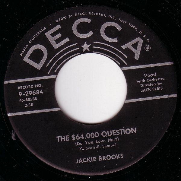 09 55....9-29684....JACKIE BROOKS..The $64,000 Question (Do You Love Me?) (45�88588)/Black Denim Trousers And Motorcycle Boots (45�88585)
