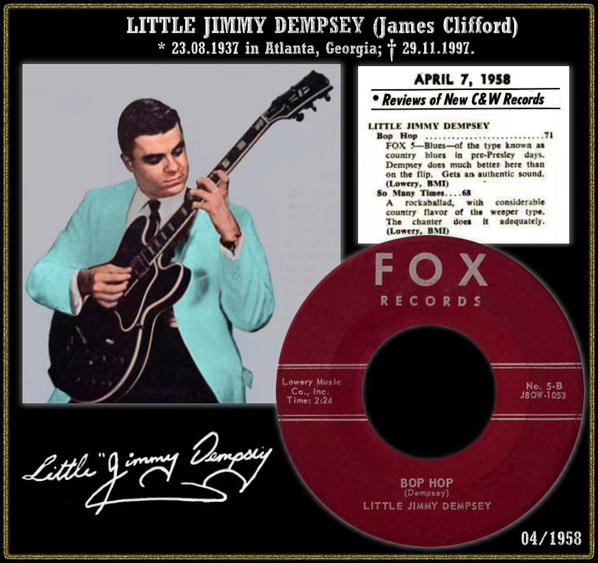 Der Gitarrist und Sänger Little Jimmy Dempsey wurde am 23. August 1937 in Atlanta, Georgia, als James Clifford Dempsey geboren und ist am 30. November 1997 an einer Herz-Attacke verstorben