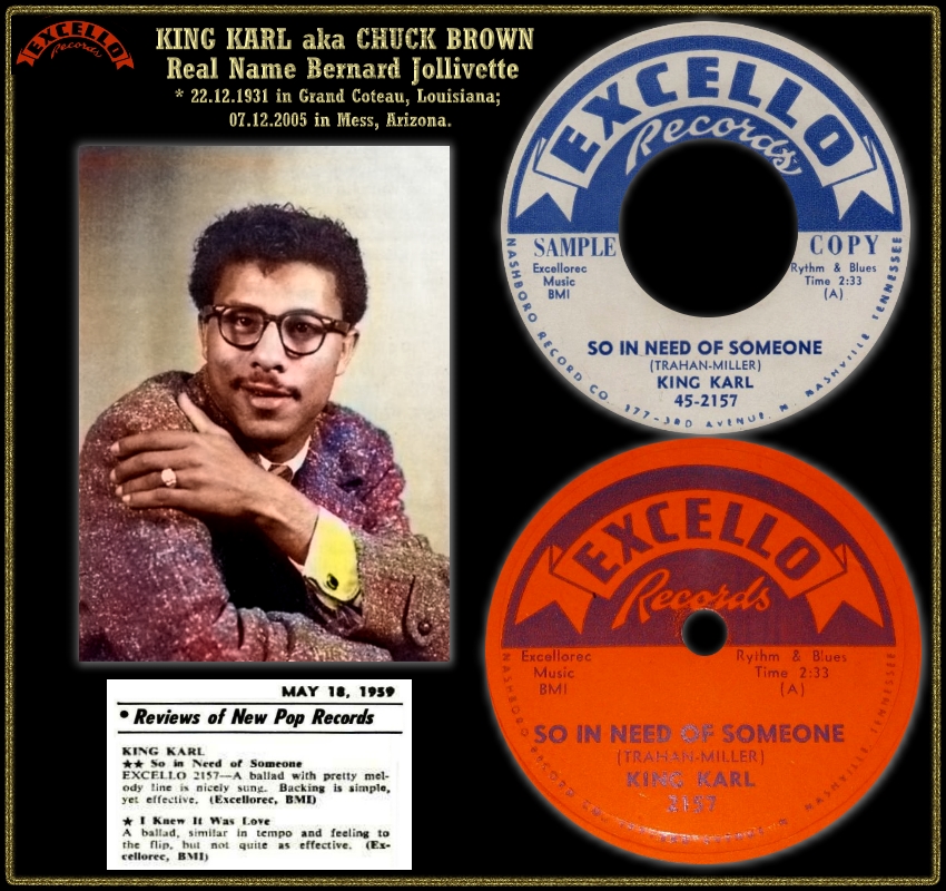 Dietmar hat mir den Tipp gegeben, dass "Chuck" Brown niemand anderer als King Karl Ist. Damit konnte ich herausfinden, dass dies Pseudonyme des Songwriters Bernard Jolivette ("This Should Go On Forever" etc.) sind, der auch bei Guitar Gable als Sänger reüssierte. Charles "Soul" Brown dürfte da vermutlich eine Fehlinformation sein.