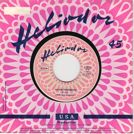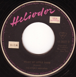 Original-Label: Cadence 1337 “Wake Up Little Susie” , deutsche Matritzenherstellung G 8 ( Juli/1958), Composer von A : “Boudleaux Bryant” und B : “Everly”, deutsche Platte auf rosa Label – auch schwarzes Label reissue bekannt, Placierung Hitparade in den USA: “Wake Up Little Susie” 9/57, # 1 pop, # 1 country, # 1 r&b