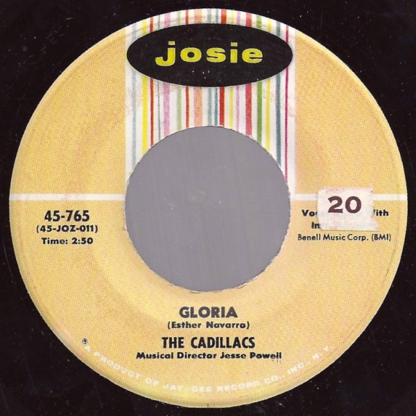 Etwa 1945 schrieb der Komponist von Songs wie "When The Swallows Come Back To Capistrano", "I Sold My Heart To The Junkman" etc. Leon René auch den Titel "Gloria" und verwendete ihn als erste Veröffentlichung seines in Hollywood neu gegründeten Labels EXCLUSIVE Records. Es wurde vom Orchester Buddy Baker mit seinem Vokalisten Bob Hayward eingespielt und im Mai 1946 auf EXCLUSIVE 218 erstmals veröffentlicht. Nach weiteren Veröffentlichungen von denen die Version der Mills Brothers am 26 November 1948 sogar in die Charts kam und Platz 18 erreichte, nahm die 1953 in New York neu gegründete Vokalgruppe die sich dann Cadillacs nannten, diesen Titel als Einstands-Single (JOZ/JOSIE 765) auf und brachten in im Juli 1954 auf den Markt, wobei bei "Gloria" kein Autor auf dem Label vermerkt war was die Vermutung nahelegt, dass der Autor in New York völlig unbekannt war, Hollywood liegt ja doch sehr weit weg von NYC, und man wollte sich keine Zeit nehmen um ihn zu finden. Leon René dürfte die Verwendung seines Titels "Gloria" im fernen New York offensichtlich nie mitbekommen haben, es gibt auch keinerlei Hinweise dafür, dass jemals eine Klage eingereicht wurde. Es ging sogar soweit, dass auf späteren Ausgaben der JOSIE 765 die Cadillacs-Managerin Esther Navarro als Autorin aufscheint und was noch bizarrer ist auch beim B-Seiten-Titel "I Wonder Why" scheint sie auf, obwohl bei der Erstausgabe mit L. Patterson der richtige Autor angeführt wurde, also Lover Patterson, der ihr seinerzeit die Cadillacs vermittelt hat (siehe dazu die Scans aus dem Netz).