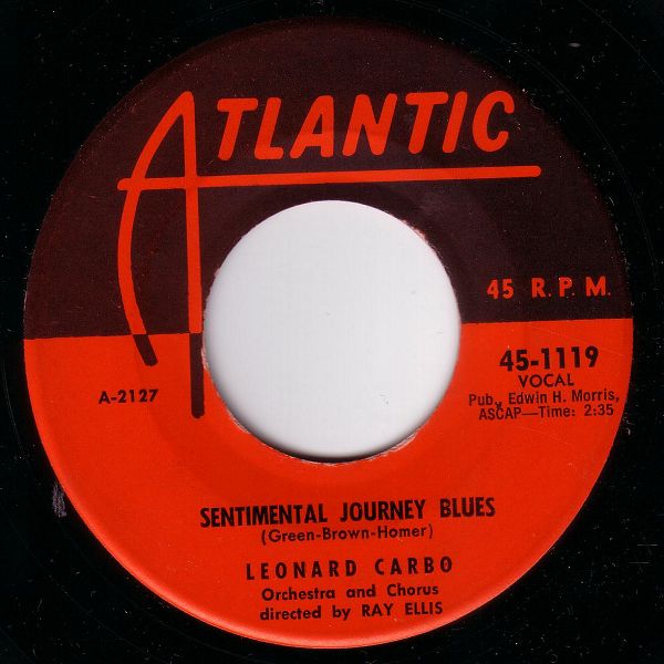 12 56....45-1119....LEONARD CARBO Orchestra and Chorus directed by RAY ELLIS..My Love, Your Love (A-2130)/Sentimental Journey Blues (A�2127)
