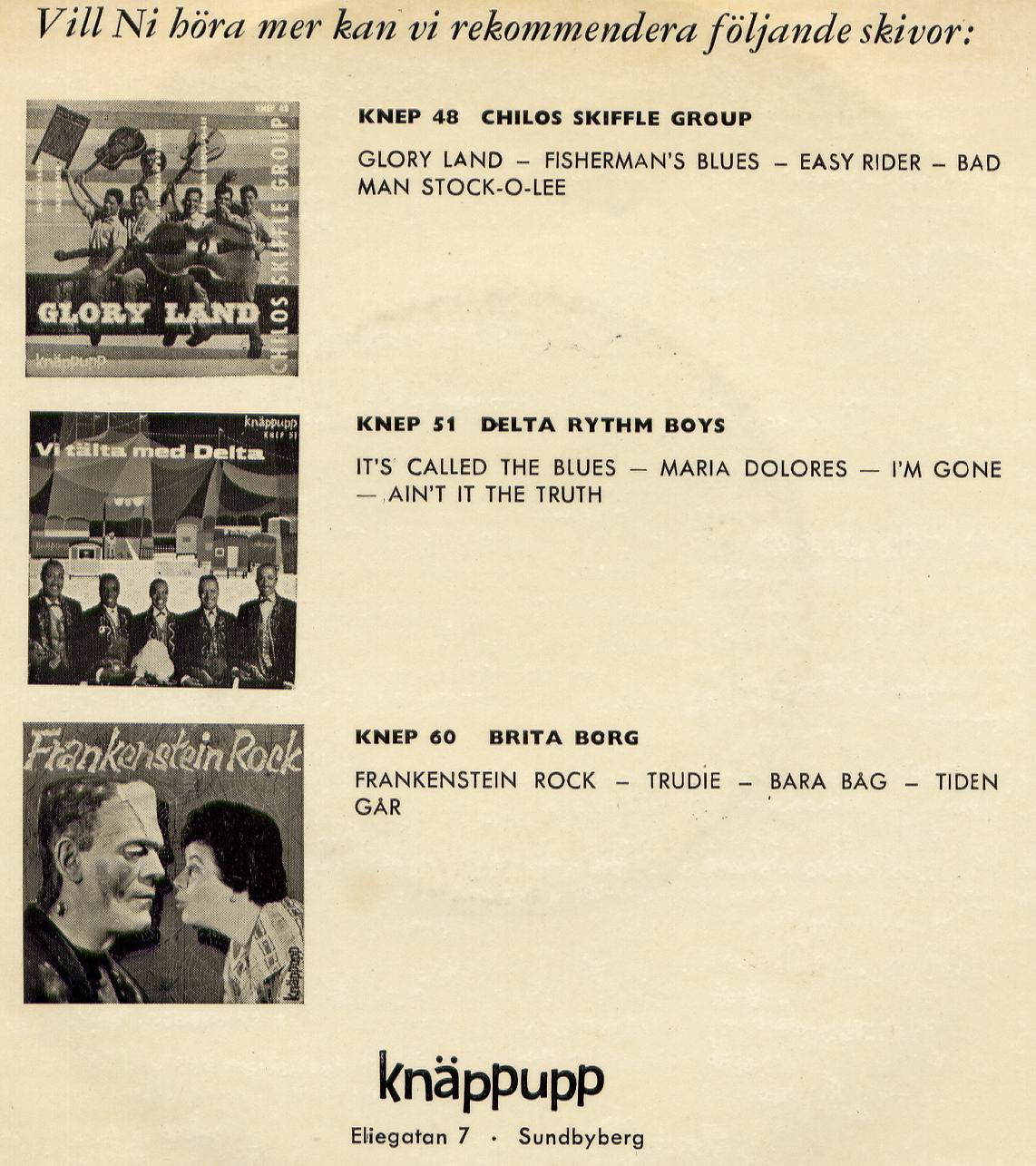 Auf einer Cover-Rückseite auf KNEP 60 fand ich sie mit einer interessanten Titel-Auswahl: