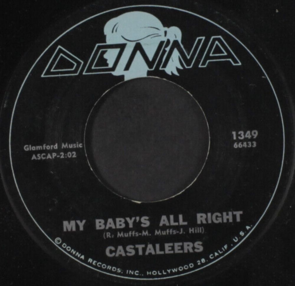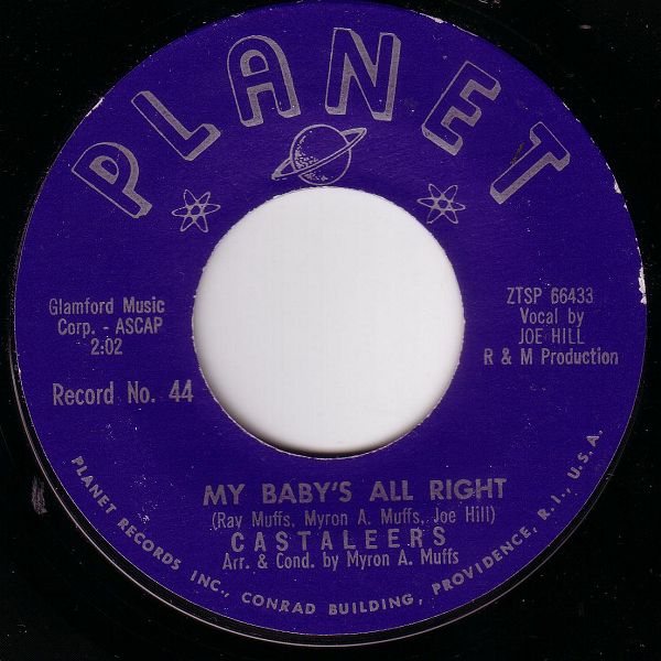 11 60….Record No. 44….CASTALEERS Arr. & Cond. by Myron A. Muffs Vocal by JOE HILL..My Baby's All Right (ZTSP 66433)/That's Why I Cry (ZTSP 66434) (dann DONNA 1349)