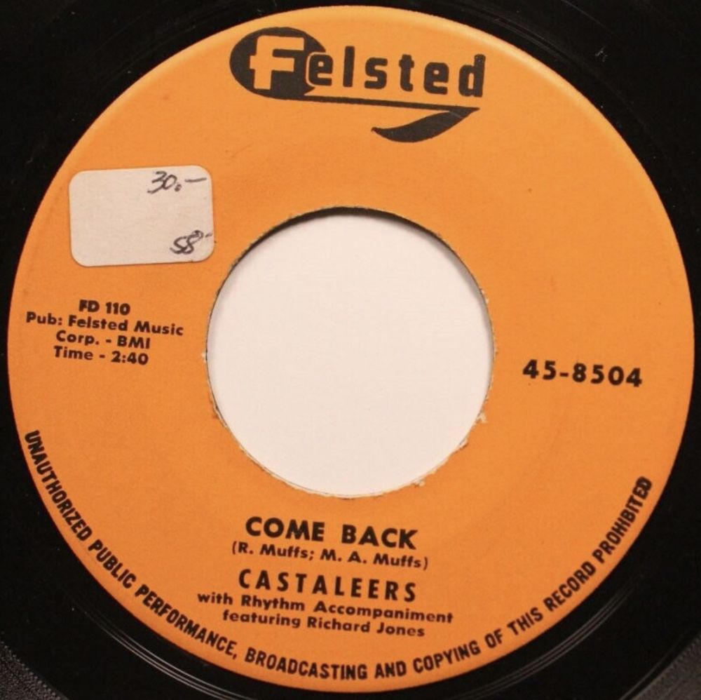 01 58....45-8504....CASTALEERS with Rhythm Accompaniment Featuring Richard Jones..Come Back (FD 110)/CASTALEERS with Rhythm Accompaniment..(My) Hi Fi Baby (FD 111)